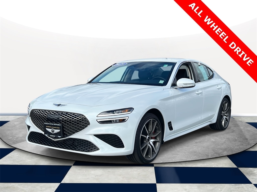 CLEAN VEHICLE HISTORY...NO ACCIDENTS, Leather Seats, ONE OWNER, 16-way Pwr Driver Seat w/Pwr Lumbar Support; Heated Front Seats, 4-Wheel Disc Brakes, 6 Speakers, 8-Way Driver seat with Height Adjustment; Heated Front Seats, ABS brakes, Air Conditioning, AM/FM radio: SiriusXM, Android Auto & Apple CarPlay, Anti-whiplash front head restraints, Auto High-beam Headlights, Auto-dimming Rear-View mirror, Automatic temperature control, Bumpers: body-color, Cruise Control, Delay-off headlights,Auto-Leveling Headlights,Dynamic Bending Light (DBL), Driver door bin, Driver vanity mirror, Dual front impact airbags, Dual front side impact airbags, Emergency communication system: Genesis Connected Services, Forward Collision Avoidance Assist, Four wheel independent suspension, Front anti-roll bar, Front dual zone A/C, Front reading lights, Fully automatic headlights, Garage door transmitter: HomeLink, Heated Multi-Adjustable Front Bucket Seats, Heated Side Mirrors, Heated/Ventilated FT Seats; Heated Steering Wheel & Rear Seats, Illuminated entry, Intergrated Memory Seat for Driver Seat, Knee airbag, Lane Keeping Assist & Driver Attention Warning, Leather-Wrapped Steering Wheel and Shift Knob, Leatherette Seating Surfaces, Low tire pressure warning, Mudguards, Navigation System With 8' display, Occupant sensing airbag, Outside temperature display, Overhead airbag, Overhead console, Panic alarm, Passenger vanity mirror, Power door mirrors, Power passenger seat, Power steering, Power windows, Radio: AM/FM/SiriusXM/HD Audio System, Rear anti-roll bar, Rear reading lights, Rear seat center armrest, Rear side impact airbag, Rear window defroster, Remote keyless entry, Reversible Cargo Tray, Security system, Speed-Sensitive Wipers, Split folding rear seat, Steering wheel mounted audio controls, Tachometer, Telescoping steering wheel, Traction control, Trip computer, Variably intermittent wipers, Wheels: 19" x 8.0J Fr & 19" x 8.5J Rr Alloy. Certified. AWD 8-Speed Automatic I4