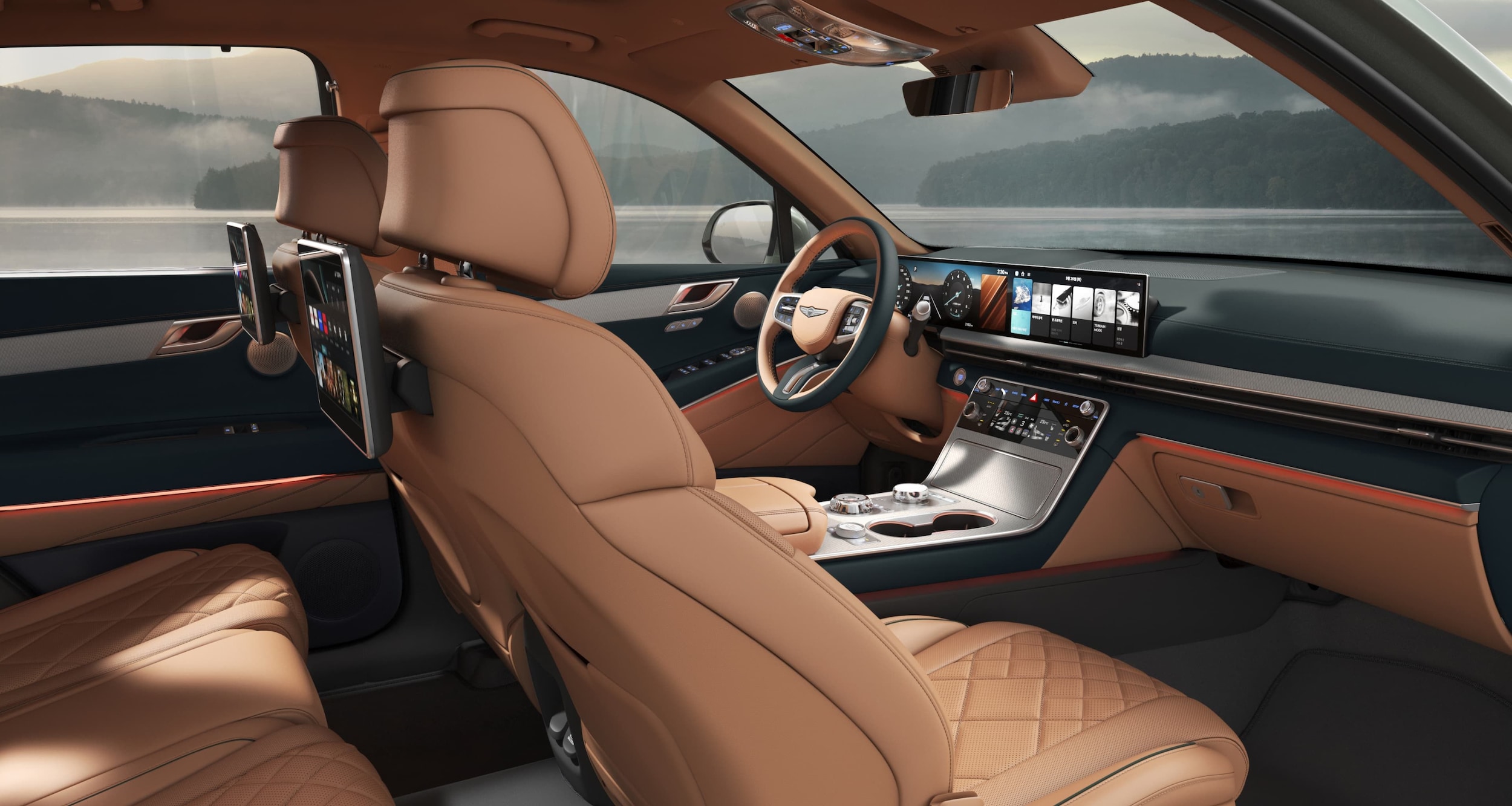 The impressive interior boasts a 27-inch OLED touchscreen display that controls the digital instrument panel and infotainment system. Smartphones sync with the system wirelessly. Front-seat occupants also have a wireless charging area.