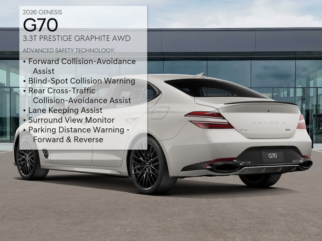 Not all rebates can be combined. Not all consumers will qualify for rebates. Please see dealer for details and eligibility. Final price is determined and set in agreement with consumer. Vatna Gray 2026 Genesis G70 3.3T Prestige AWD 8-Speed Automatic 3.3L V6 DGI DOHC 24V