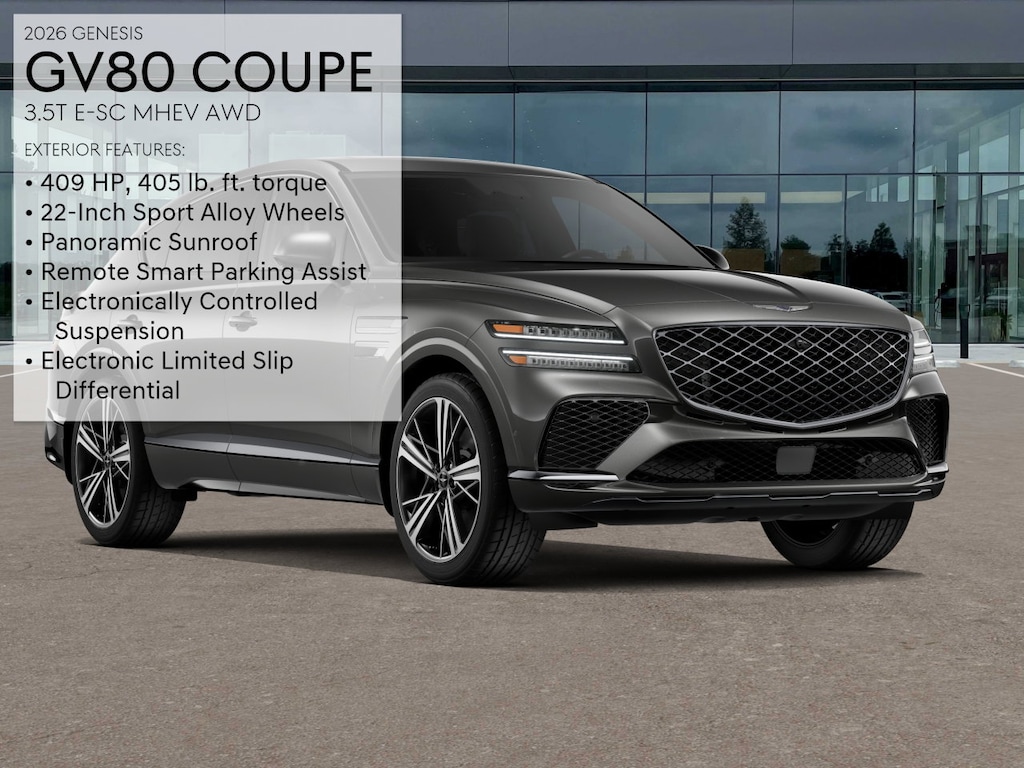 Not all rebates can be combined. Not all consumers will qualify for rebates. Please see dealer for details and eligibility. Final price is determined and set in agreement with consumer. Gray 2026 Genesis GV80 Coupe 3.5T e-SC AWD 8-Speed Automatic 3.5L V6