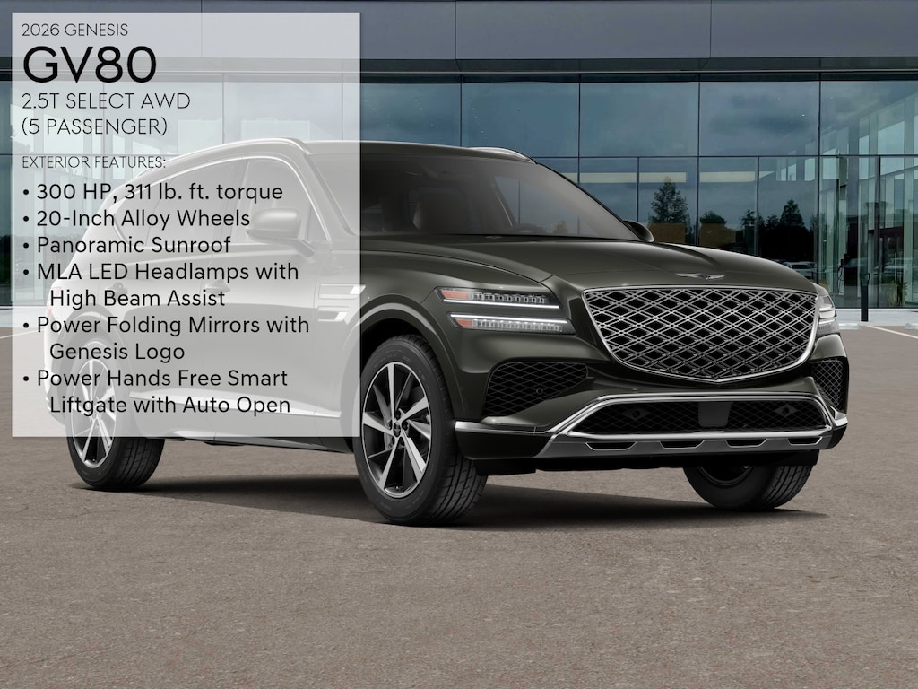 Not all rebates can be combined. Not all consumers will qualify for rebates. Please see dealer for details and eligibility. Final price is determined and set in agreement with consumer. Green 2026 Genesis GV80 2.5T AWD 8-Speed Automatic 2.5L DOHC