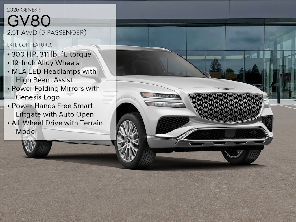 Not all rebates can be combined. Not all consumers will qualify for rebates. Please see dealer for details and eligibility. Final price is determined and set in agreement with consumer. Alta White 2026 Genesis GV80 2.5T AWD 8-Speed Automatic 2.5L DOHC