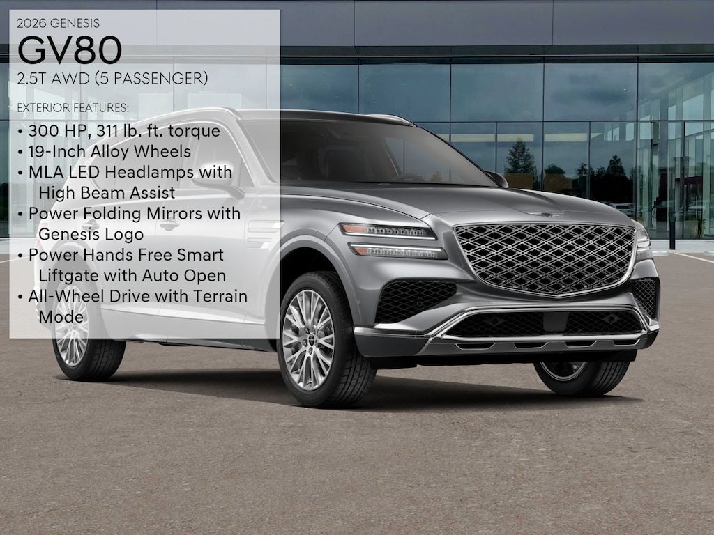 Not all rebates can be combined. Not all consumers will qualify for rebates. Please see dealer for details and eligibility. Final price is determined and set in agreement with consumer. Silver 2026 Genesis GV80 2.5T AWD 8-Speed Automatic 2.5L DOHC